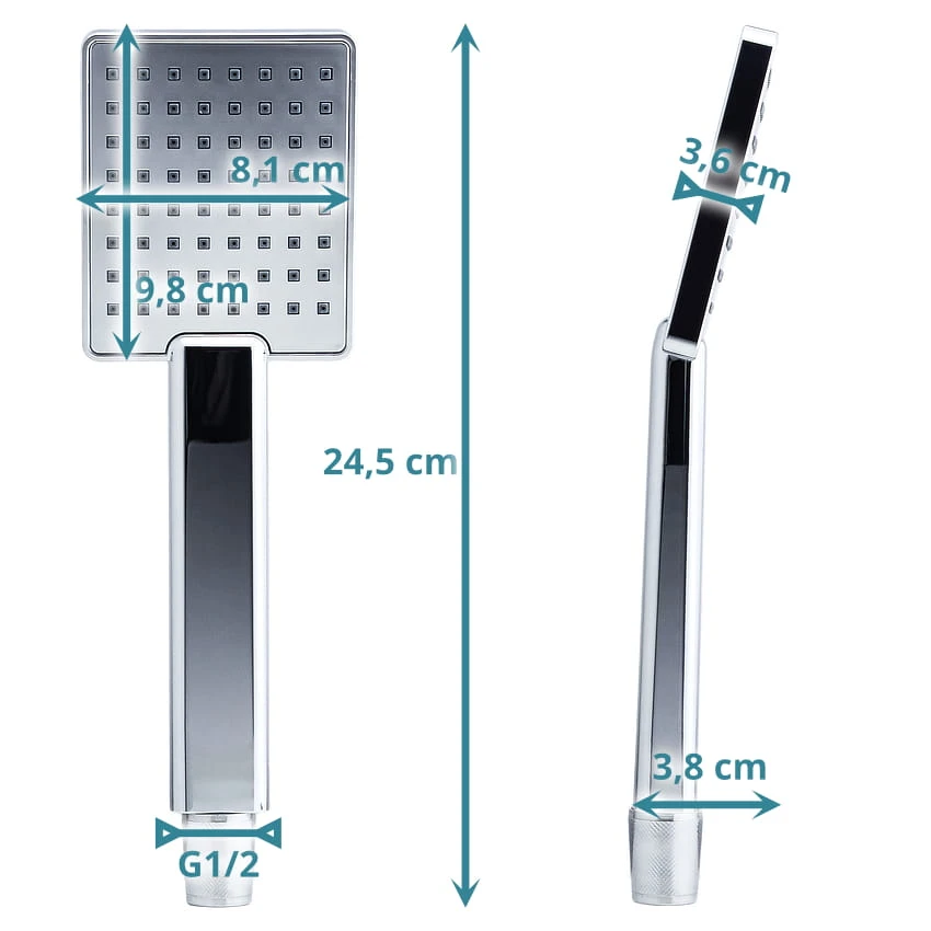 Jej kwadratowy kształt oraz cienki profil nada Twojej łazience nowoczesny wygląd. Słuchawka została wykonana z wysokiej jakości tworzywa ABS, co sprawia, że jest lekka i trwała. Chromowane wykończenie - błyszczący wygląd i nowoczesny kształt sprawiają, że jest nie tylko funkcjonalna, ale i ozdobna.