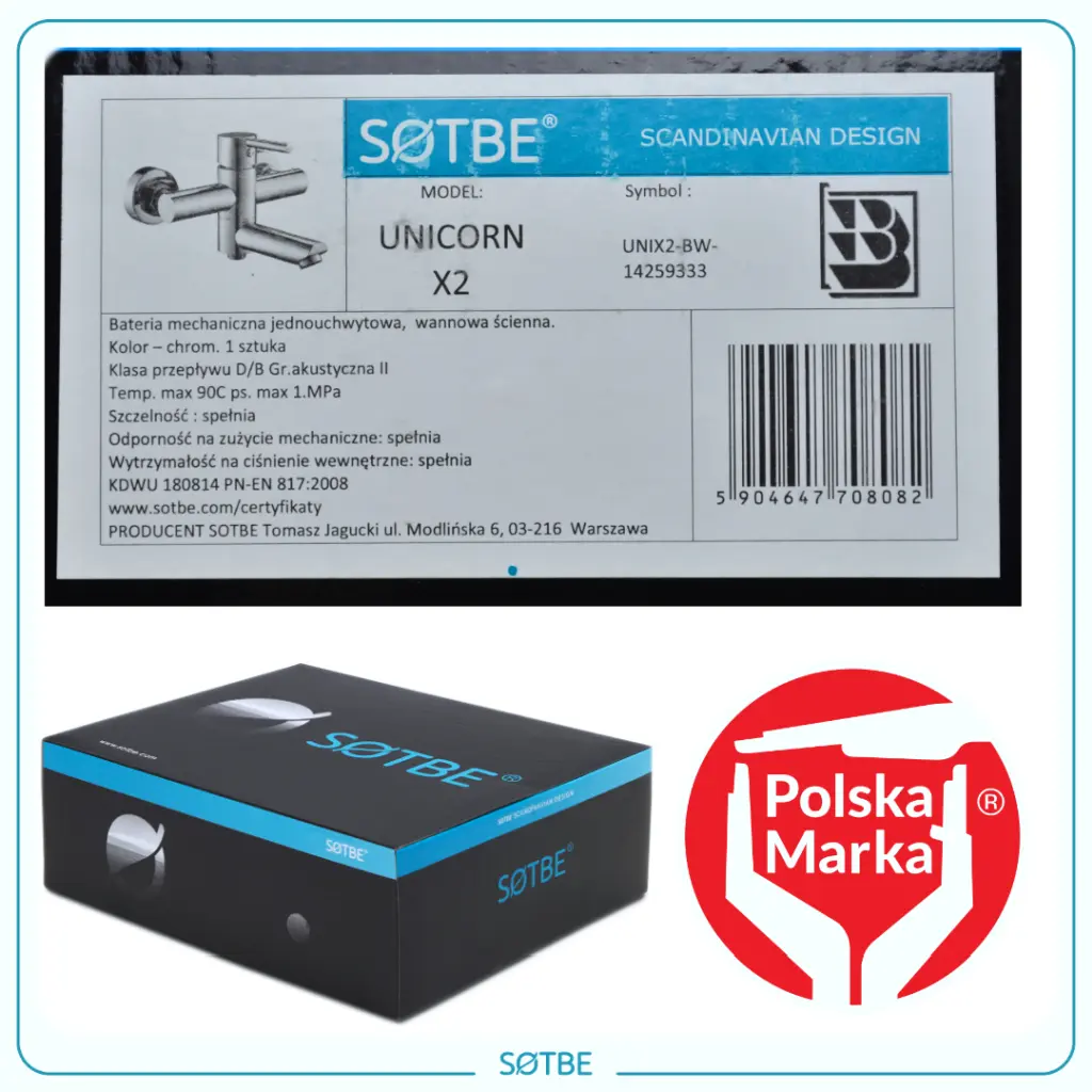 SOTBE UNICORN X2 bateria wannowa ścienna + ZESTAW