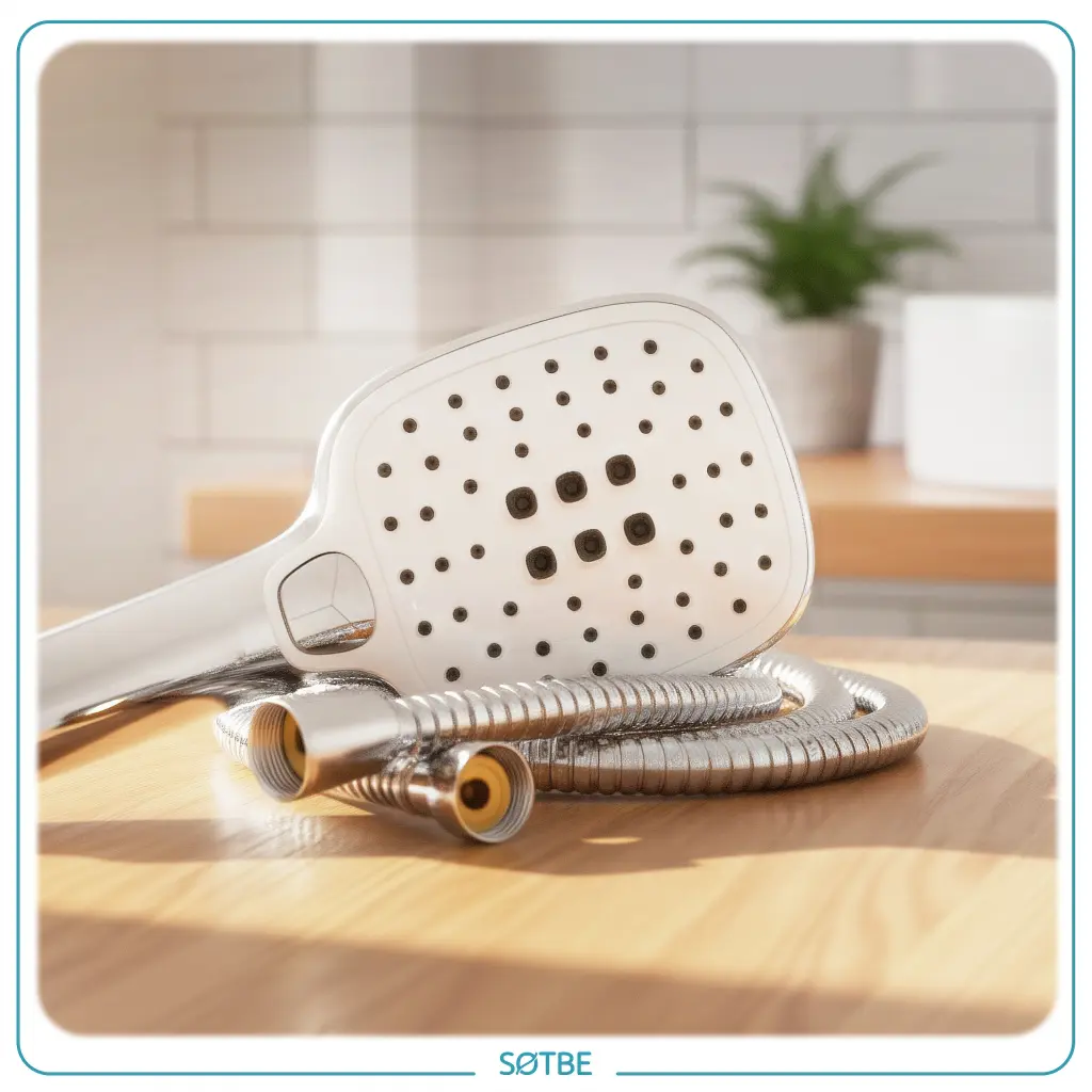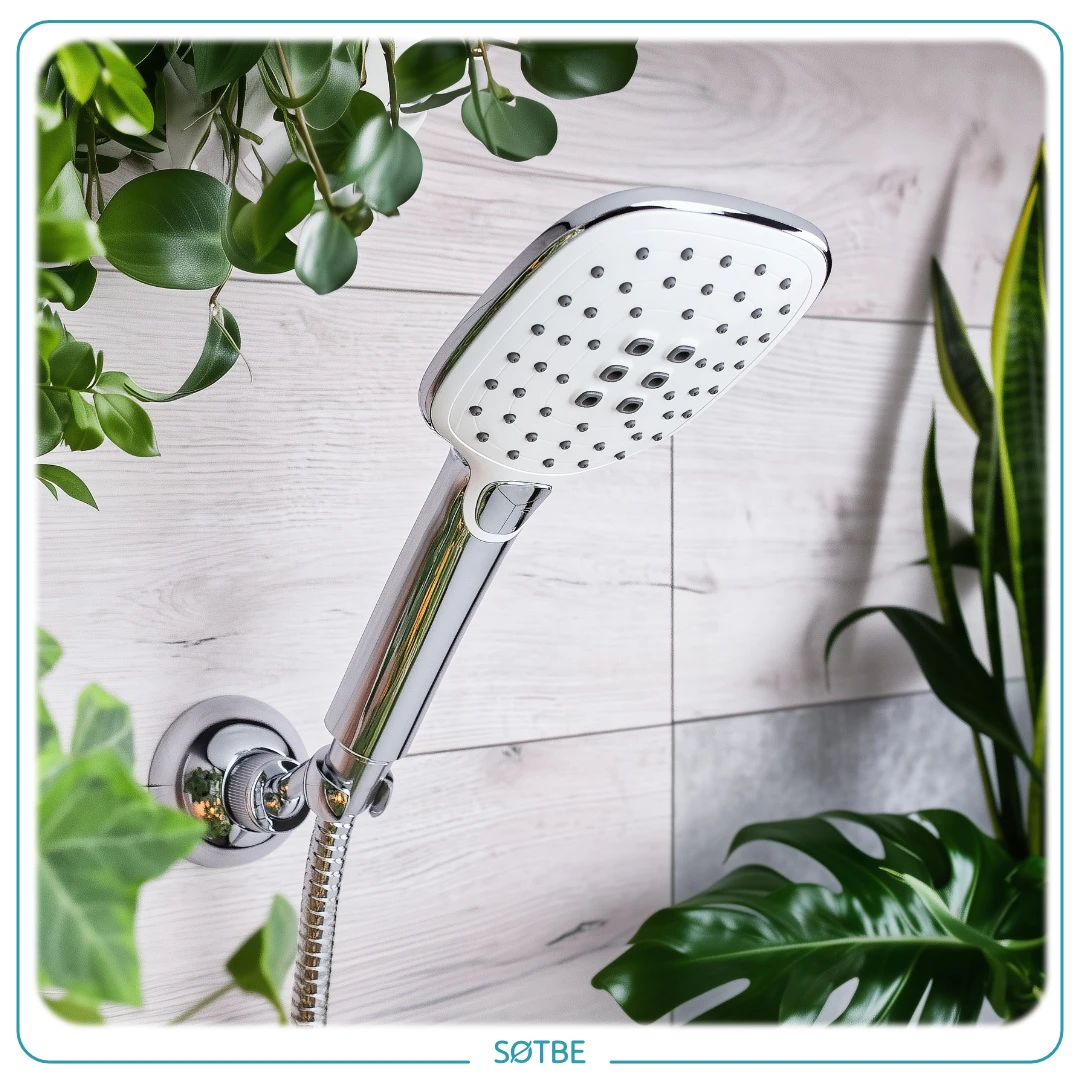 SOTBE LARK WHITE to połączenie nowoczesnego designu z wyjątkową dbałością o bezpieczeństwo i ekonomię. Biało-chromowana kolorystyka nadaje łazience świeżości, a lekka konstrukcja z wysokiej jakości tworzywa sprawia, że słuchawka jest bezpieczna dla wanny – w razie upadku nie powoduje pęknięć ani odprysków, co często zdarza się przy ciężkich, metalowych modelach.