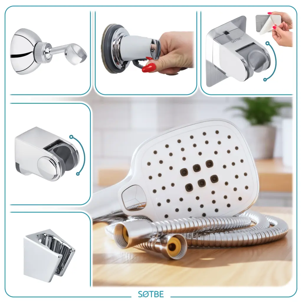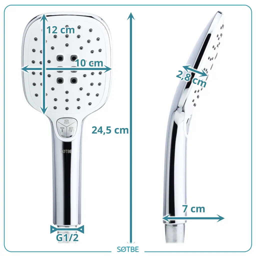 - Uniwersalny montaż: Słuchawka pasuje do wszystkich standardowych węży prysznicowych i baterii (gwint G 1/2").