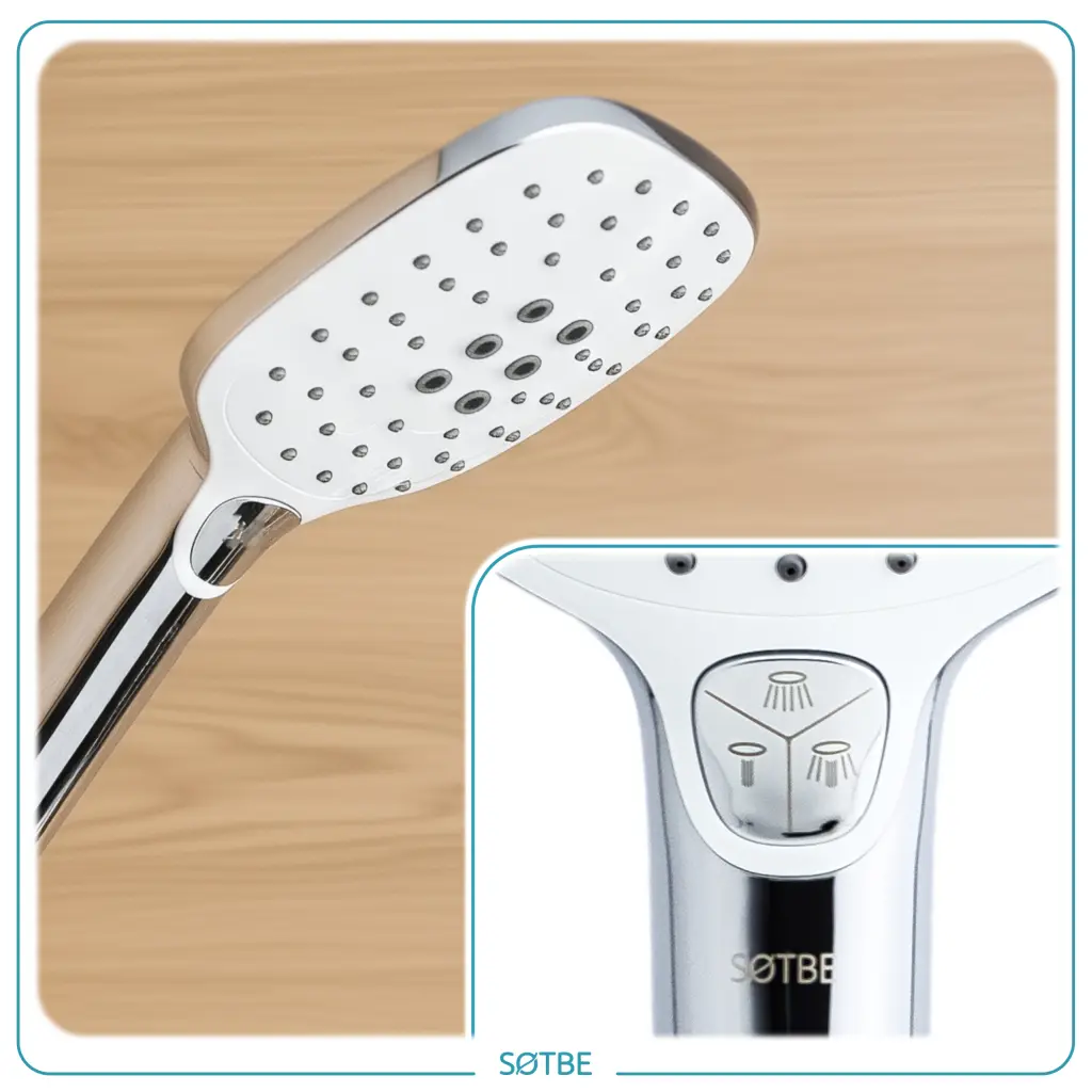 - 3 rodzaje strumienia: Wybierz między relaksującym deszczem, intensywnym masażem punktowym a trybem mieszanym, aby dopasować kąpiel do swoich potrzeb.