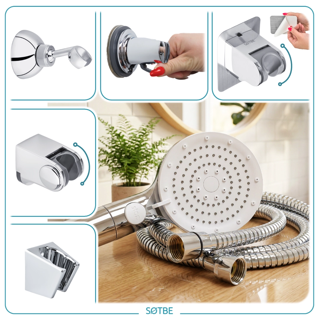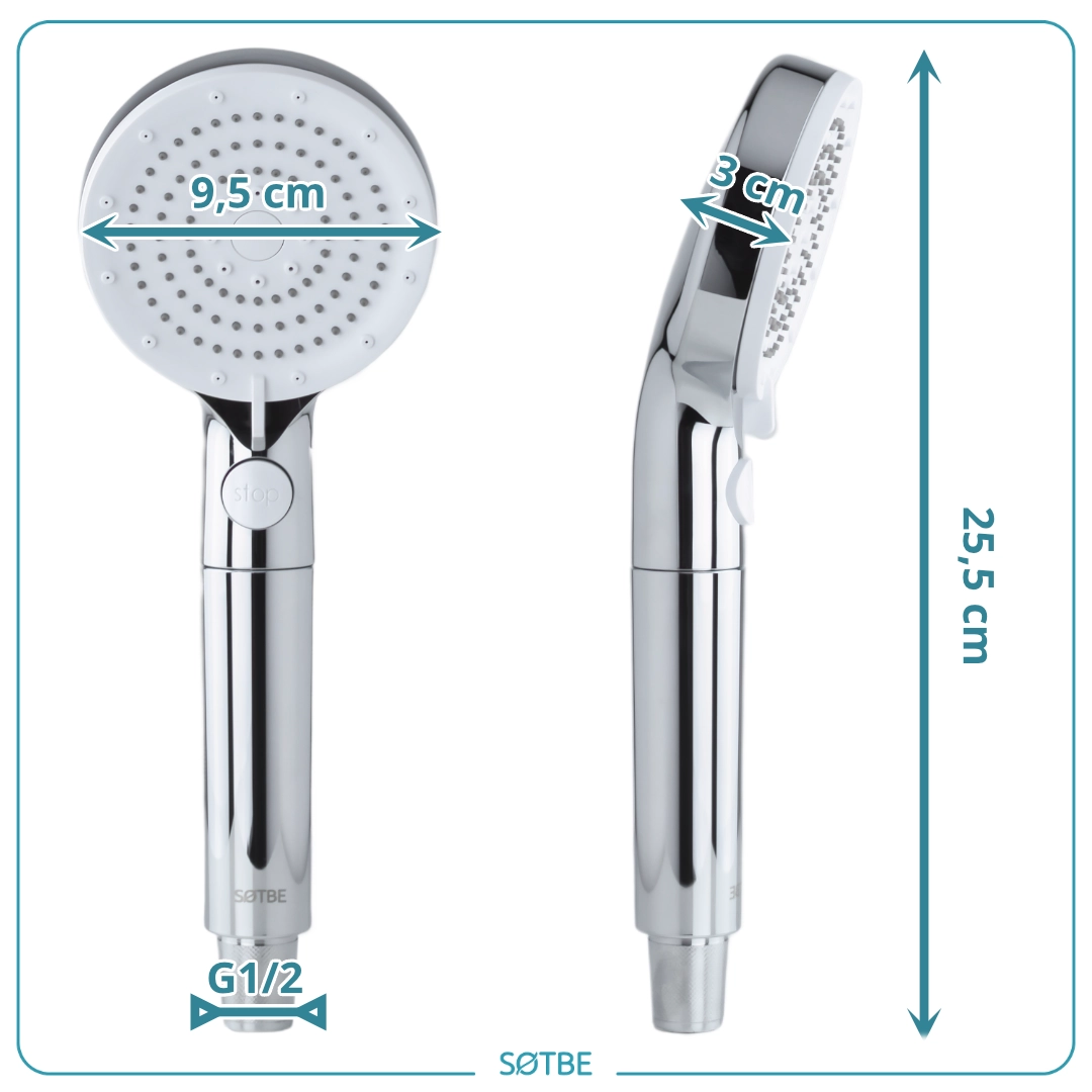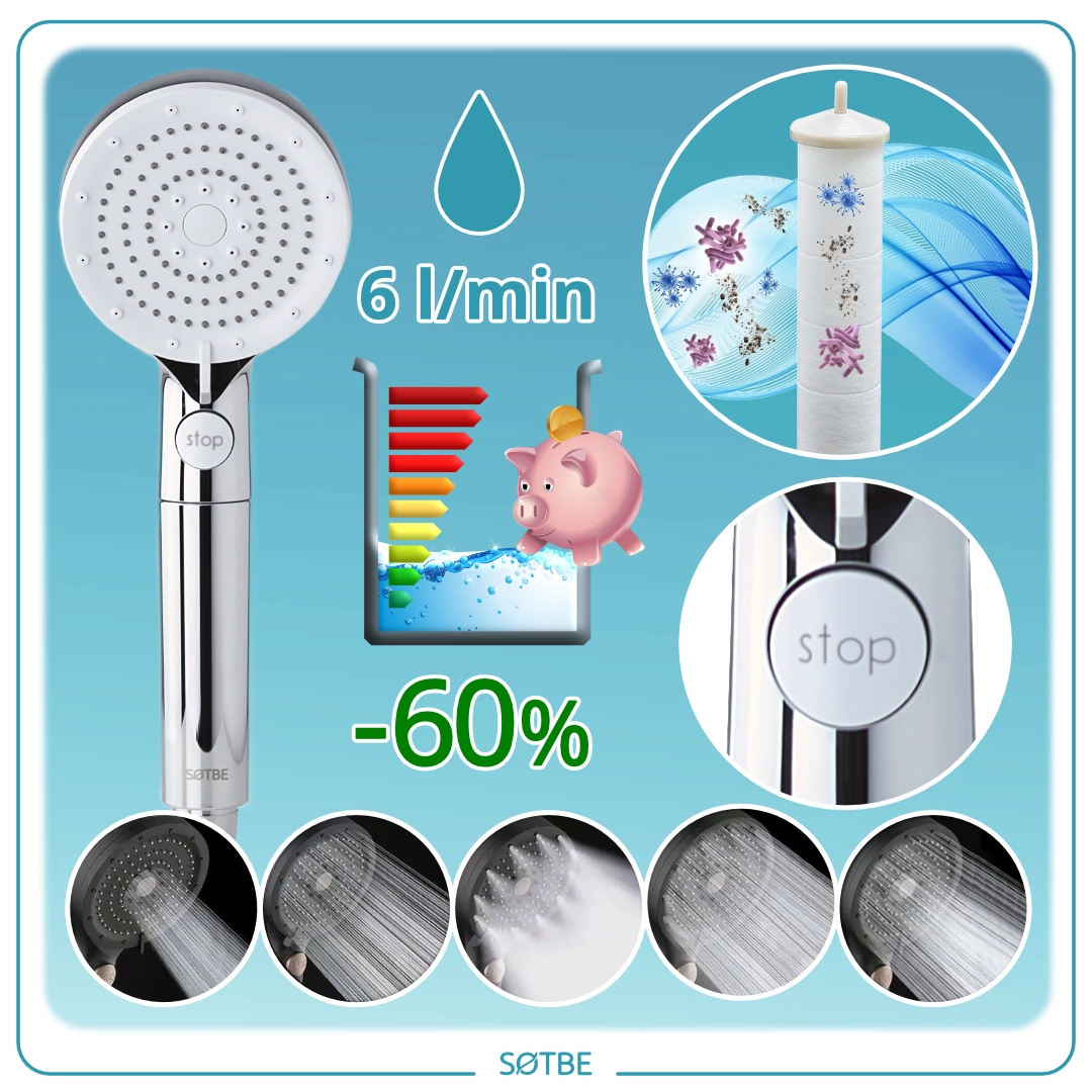 SOTBE LARK TIRSO wodooszczędna słuchawka prysznicowa 5 zakresowa z filtrem. Kolor chrom